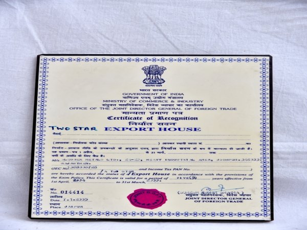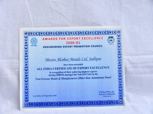 Award of export excellence 2000-2001 dtd. 26 September 2003