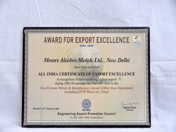Award for export excellence 2003-2004 on dtd 13 jan 2006